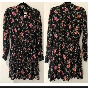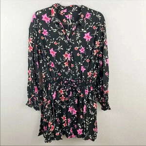 Bright blooms bring midnight garden charm to a long-sleeve minidress that buttons at the front and is styled with a flattering smocked panel at the waist.