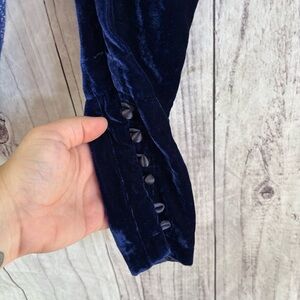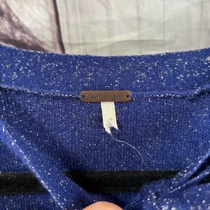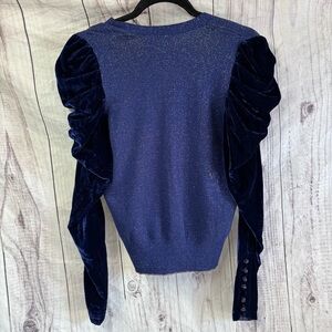 FREE PEOPLE LUREX BLUE VELVET PUFF SLEEVE SWEATER SIZE LARGE