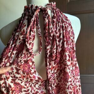 FREE PEOPLE | LYLA Red Floral Gauze High Neck Ruffle Hem Mini Dress | Medium