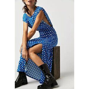 FREE PEOPLE Lakeside Mini Printed Dress in Bluebell Combo Hearts Size Large