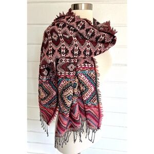 FREE PEOPLE Large Ethnic Tribal Pattern Wrap Shawl Scarf 70"L x 25"W