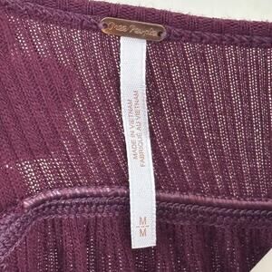 FREE PEOPLE Leo Henley Waffle Knit OVERSIZED Thermal Top in Deep Burgundy SZ M