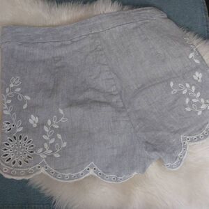 Life's Too Short Shorts in Grey sweet summer shorts are like new. Eyelet embroidery and scalloped edges accent these shorts with a hidden side zip and eye hook.