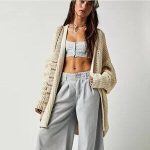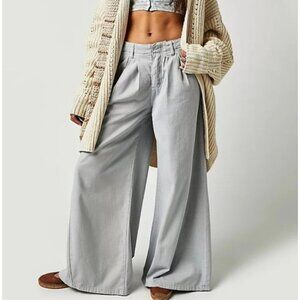 FREE PEOPLE Light As Spring Trousers Wide Leg Effortless Oversized Pants Grey 6