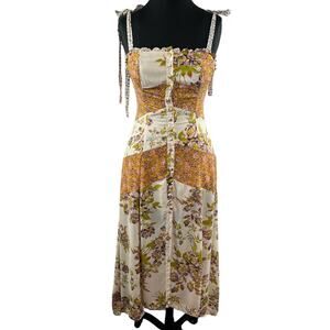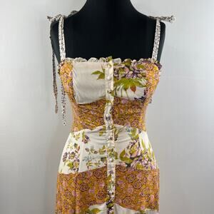 FREE PEOPLE Light Combo Lover Boy Tie Strap Button Up Maxi Dress OB902389 Boho 0
