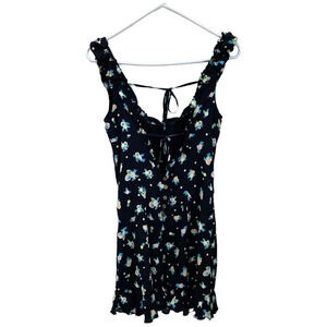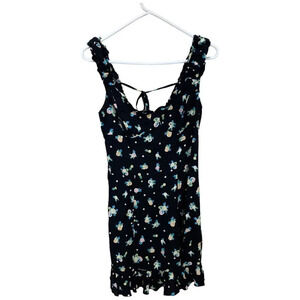 FREE PEOPLE Like A Lady Mini Dress Black Lemon Print Linen Size Small
