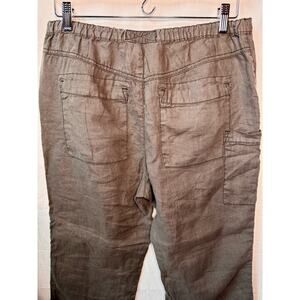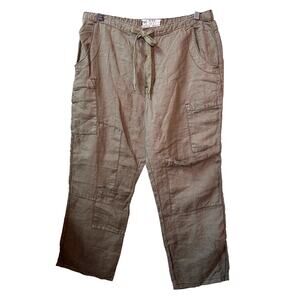 FREE PEOPLE Linen Pants Womens S Cargo Crop Patchwork Utility Green Relaxed Fit