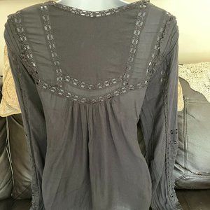 FREE PEOPLE - Long Sleeve V-Neck Button Up Blouse (Black)