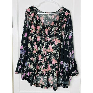 FREE PEOPLE Lorretta Floral Tunic Dark Combo Womens XS Oversized Ruffle Boho