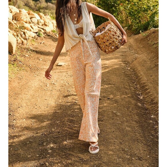 FREE PEOPLE Love So Right Cotton Wide Leg Pants - Color: Orange, Size 14 NWOT