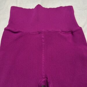 FREE PEOPLE MAGENTA RIBBED WORKOUT LEGGINGS M/L