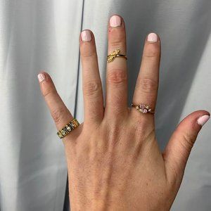 featured on my middle finger! my middle finger is a size 8 but the actual ring is a size 5, it's meant to sit on the middle of your finger! unless you have smaller finger than me then it can be a regular ring!