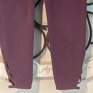 THESE CROPPED LENGTH LEGGINGS WITH CRISSCROSS CUTOUT REGULAR RISE IN PLUM COLOR ARE IN EXCELLENT CONDITION
