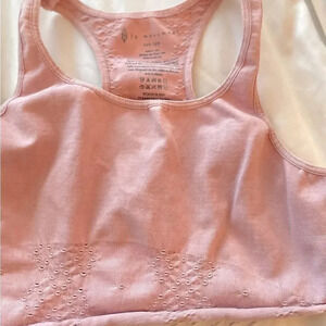 FREE PEOPLE MOVEMENT RIBBED AND DISTRESSED HIGH NECK CROPPED TANK SIZE XS/S PINK