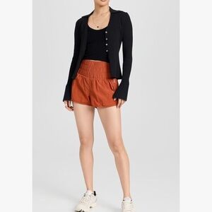 Size L. Stylish rust-colored high waisted Free People Movement way home shorts perfect for casual outings. Comfortable and chic, these shorts are a must-have for your wardrobe. Excellent used condition! Reasonable offers welcome!