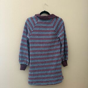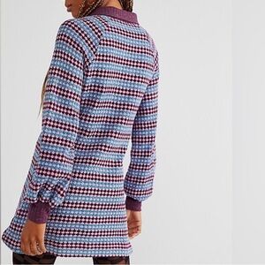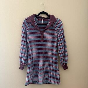 FREE PEOPLE Maggie Sweater Printed Henley Polo Puff Mini Dress Size Small
