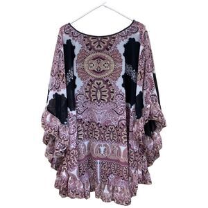 Butterfly sleeves silhouette boho dress cut from airy, patterned georgette
