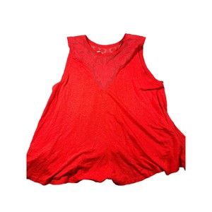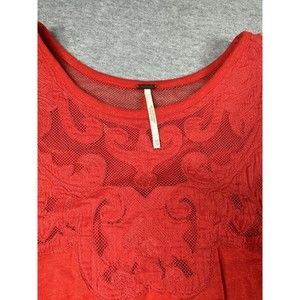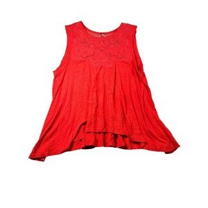 FREE PEOPLE Meant To Be Tee Red Orange Embroidered Tank Top XS Blouse
