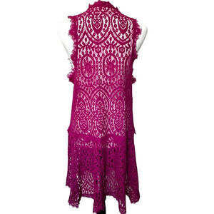 FREE PEOPLE Medium Pink Orchid Magenta Heart in Two Lace Mini Dress Cover Up