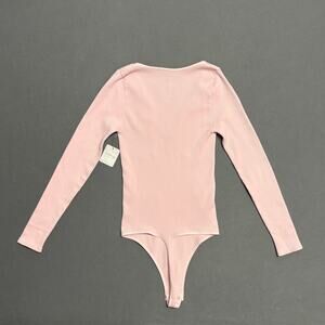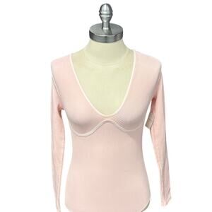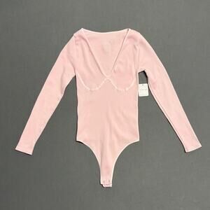 FREE PEOPLE Meg Seamless V-Neck Bodysuit Rose Blush Pink Size M-L Intimately