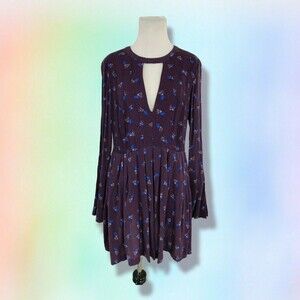 FREE PEOPLE Mini Dress 6 OB536552 Purple Tegan bell sleeves keyhole whimsygoth
