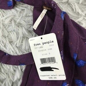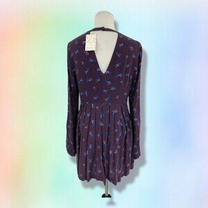 FREE PEOPLE 6 OB536552 Purple Tegan Long Sleeve Pleated Mini Dress keyhole