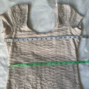 Free People Textured Beaded Scoop Neck Mini Dress Light Beige Short Sleeve