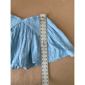 FREE PEOPLE Mini Gauze Pull On Shorts with Pockets, Medium, 100% Cotton, Blue