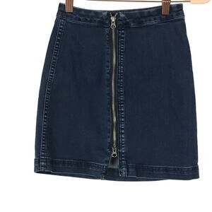 Free People This Way or That Asymmetrical Zip Stretch MIni Skirt Denim Jean sz 0. Cedar Blue, a dark medium indigo blue. Free People This Way or That Medium Wash Denim Mini Skirt is as effortless as it gets! Soft and stretchy denim forms this fitted, high-waisted skirt with an exposed gunmetal side zipper.