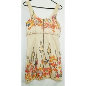FREE PEOPLE Mini Spring Summer Sun Dress Cotton Blend Floral Zip Back Size 2
