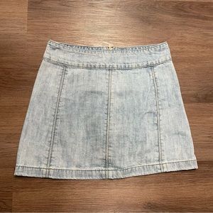 This Free People skirt is in excellent used condition! Mini denim style. Light wash. Size 8. Let me know if you have any questions.