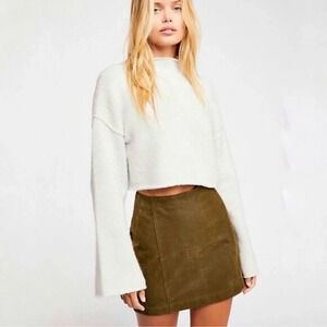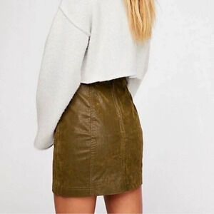 FREE PEOPLE Modern Femme Olive Green Vegan Leather Suede Skirt Mini Size 4