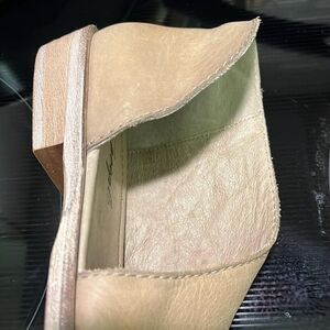 Made with the finest Spanish craftsmanship and leather, this open toe shoe features side cutouts. Slight stacked heel.