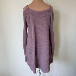 FREE PEOPLE Moonshine Cold Shoulder Waffle Knit Purple V-Neck Sweater Size Small
