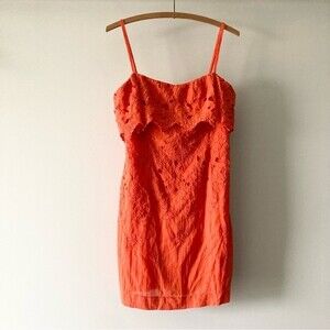 FREE PEOPLE Morning Dove Strapless Orange/Red Mini Dress Size 10