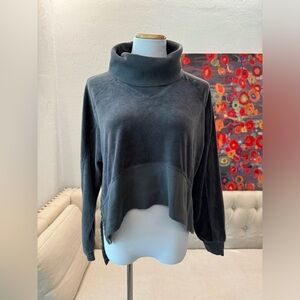 FREE PEOPLE Movement Last Chance Velour Pullover Shirt Charcoal Top Size XS