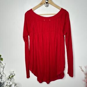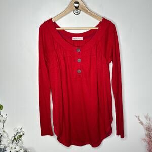 FREE PEOPLE Must Have Thermal Henley Top Cherry Red Sz M {3X19}
