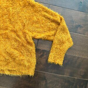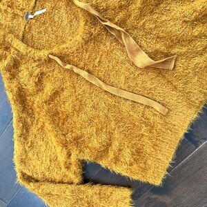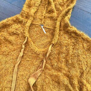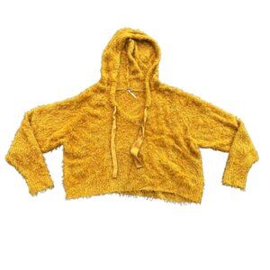 FREE PEOPLE Mustard Yellow Eyelash Fuzzy Cropped Hooded Sweater Size Small