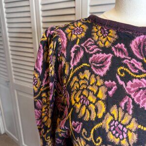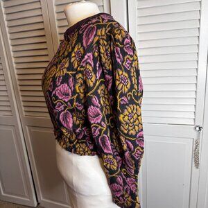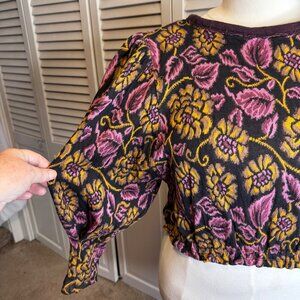 FREE PEOPLE NO ORDINARY TOP MEDIUM PURPLE TAPESTRY CROPPED PUFF SLEEVE SWEATER