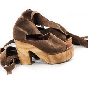 FREE PEOPLE NWOB Clog Touch The Sky Wrap Platform Sandal Brown Suede Open Toe