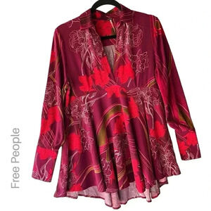 FREE PEOPLE | NWOT | FIELD OF FLOWERS LONG SLEEVE V-NECK TUNIC DRESS | SIZE: XS