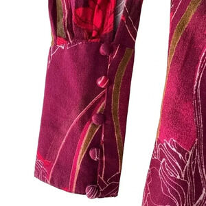 - Long sleeves that feature an extra long 5” cuff with covered buttons and loop closures