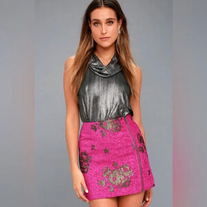 FREE PEOPLE NWOT Movin On Embroidered Mini Skirt in Fuchsia Pink