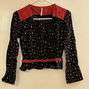 FREE PEOPLE NWOT Where We Roam Printed Top in Black