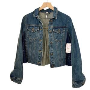 FREE PEOPLE NWT Floral Lace & Dark Denim Jacket – Size Small