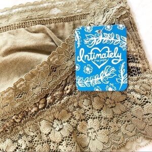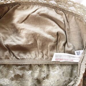 Brand New, Cute Lace Trimmed Bandeau Style Bra from Free People. This pretty Bandeau Bra features a soft lace design. Stretchy fit and sheer lace back. Side boning for extra support. Scalloped lace trimming all around. Easy pull on style. A favorite layering piece that Free People designs for every season! Color is Taupe. Woman’s Size XS