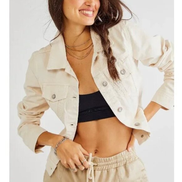 FREE PEOPLE NWT Rumors Denim Jacket / Ecru - XS