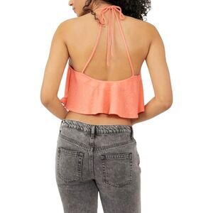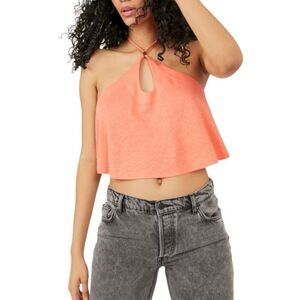 FREE PEOPLE NWT BOHO HALTER TANK TOP SLEEVELESS V-NECK SLEEVELESS FESTIVAL TEE in Coral pink
