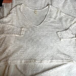 FREE PEOPLE Napa Crochet White Off The Shoulder Oversized Extra Small Mesh Top