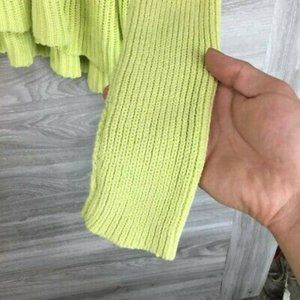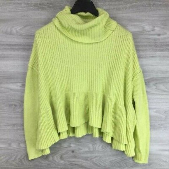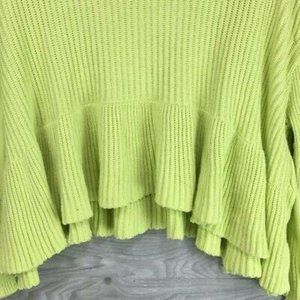 FREE PEOPLE | Neon Lime Green Cowl Neck Ruffle Hem Layer Cake Boho Knit Sweater